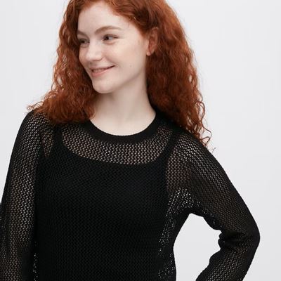 ユニクロのレディース2024年春夏新作・メッシュクルーネックセーター(長袖)