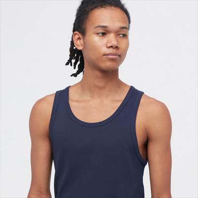 ユニクロのメンズ(男女兼用)2024年春夏新作・ドライカラーリブタンクトップは、サラッとした肌ざわりで快適。