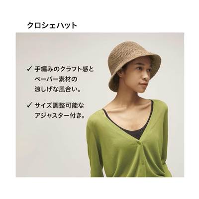 ユニクロのレディース2024年春夏新作・クロシェハットの仕様は次のとおりです。