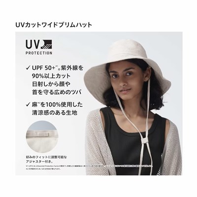 ユニクロのレディース2024年春夏新作・UVカットワイドブリムハット