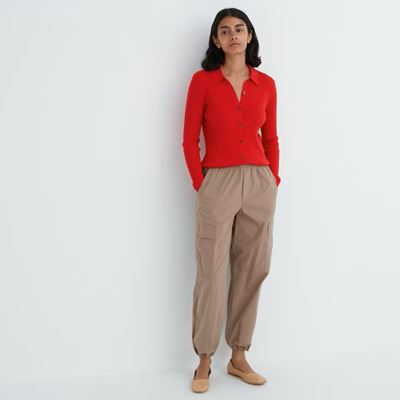 ユニクロのメンズ(男女兼用)2024年春夏新作・コットンリラックスリブジョガーパンツは、動きやすい伸縮性のあるコットン素材を使用。