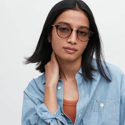 - 丸型フレームとメタルフレームを組み合わせた、クラシカル過ぎないカジュアルなデザイン。