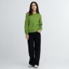 ユニクロのレディース2023年秋冬新作・プレミアムラムクルーネックセーター(長袖)は、ふんわりやわらかくて暖かい上質ウール100%。
