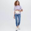 ユニクロのレディース2023年春夏新作・ウルトラストレッチハイライズデニムクロップドレギンスパンツは、自由自在に伸びてラクに履ける。
