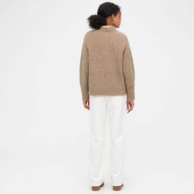 ユニクロのレディース2022年秋冬新作・ローゲージモックネックセーター(長袖)は、やわらかい風合いのざっくりニット。