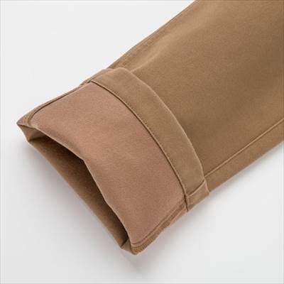 表地はストレッチがきいたチノ素材で、裏地は起毛トリコット素材を使っています。