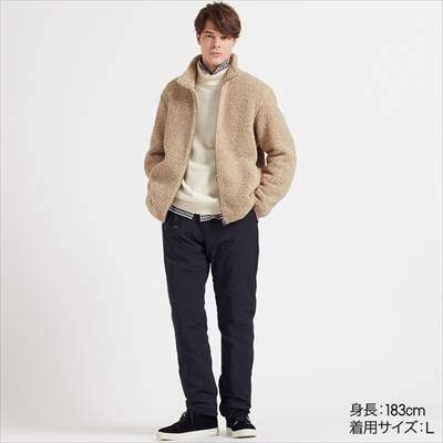 ユニクロの防風ストレッチスリムフィットチノは、裏起毛と防風フィルムで防寒性はしっかり。